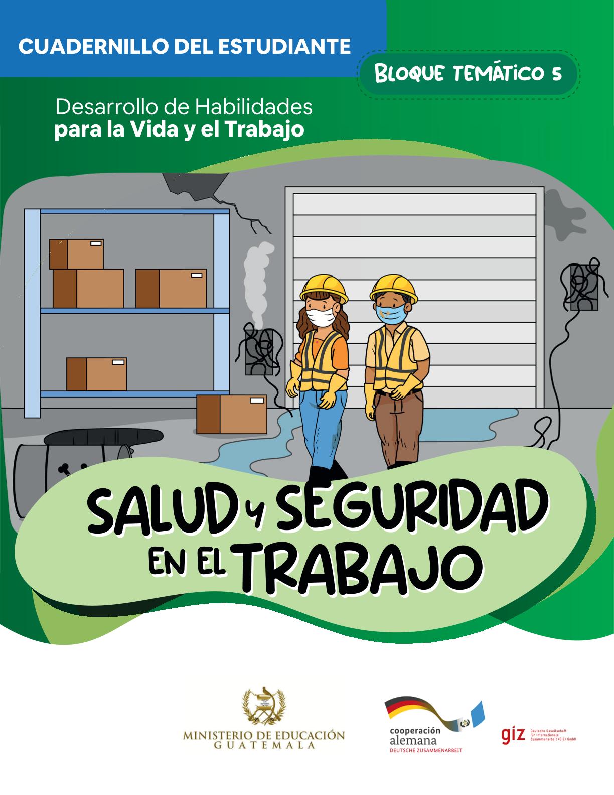 Este es el cuaderno de trabajo del bloque temático 5 de 6 del proceso formativo para la vida y el trabajo. En este cuaderno, el estudiante realiza ejercicios para conocer la importancia de practicar la seguridad en el trabajo. El proceso contiene, por cada bloque temático, una guía para docente y un cuadernillo para estudiantes.